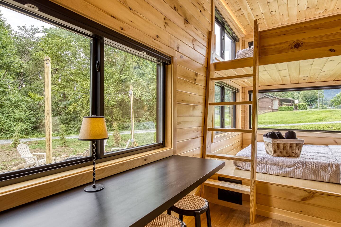 Smoky Nook – Modern Tiny Home with Hot Tub near Dollywood, Gatlinburg & Pigeon Forge. Escape to Smoky Nook, a stylish and cozy tiny home perfectly located in the heart of the Smoky Mountains. Surrounded by peaceful woods and just minutes from Pigeon Forge, Dollywood, Sevierville, and Gatlinburg, this retreat is your gateway to top attractions, hiking trails, and mountain adventures. Unwind in the private hot tub, gather around the fire pit, or stroll to the nearby creek. Ideal for romantic getaways or small family vacations, Smoky Nook blends modern comfort with authentic Smokies charm.
